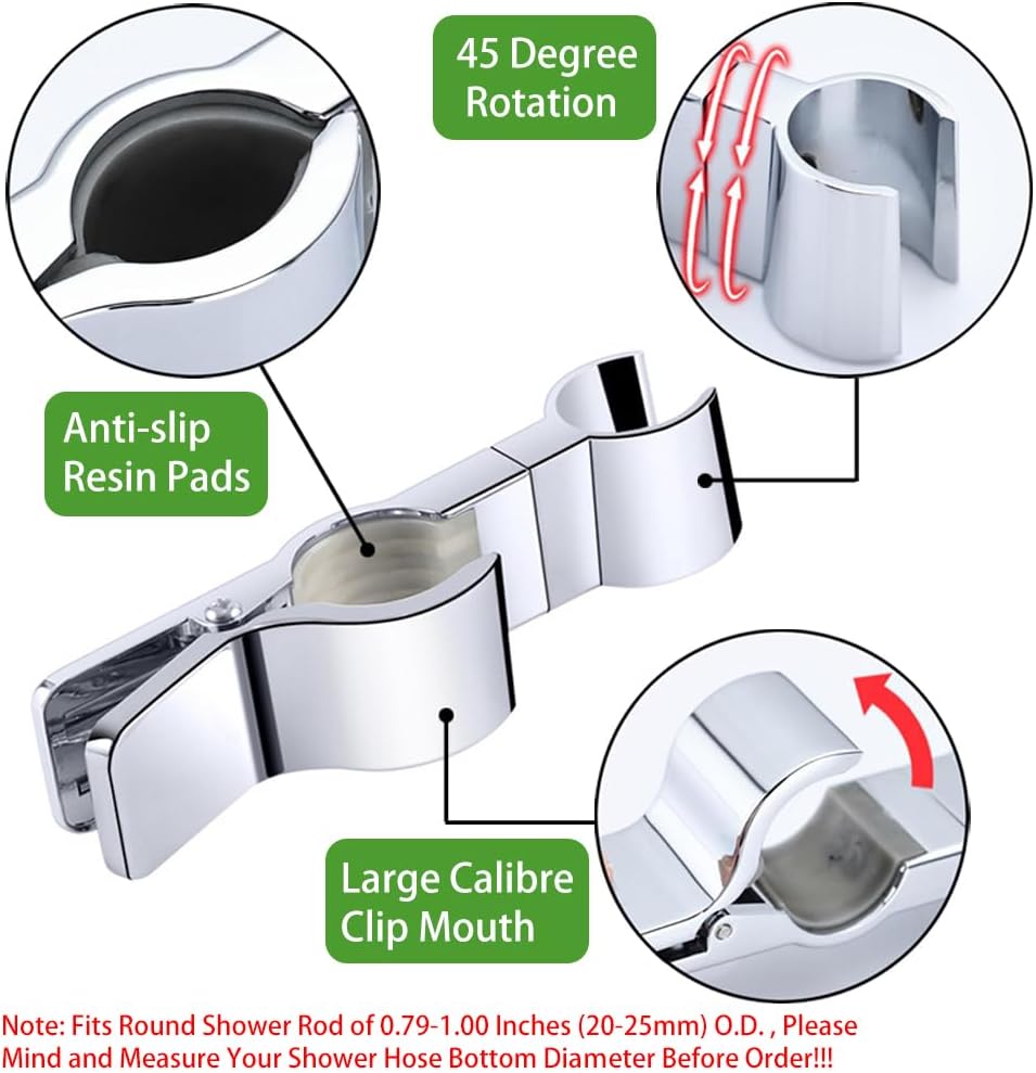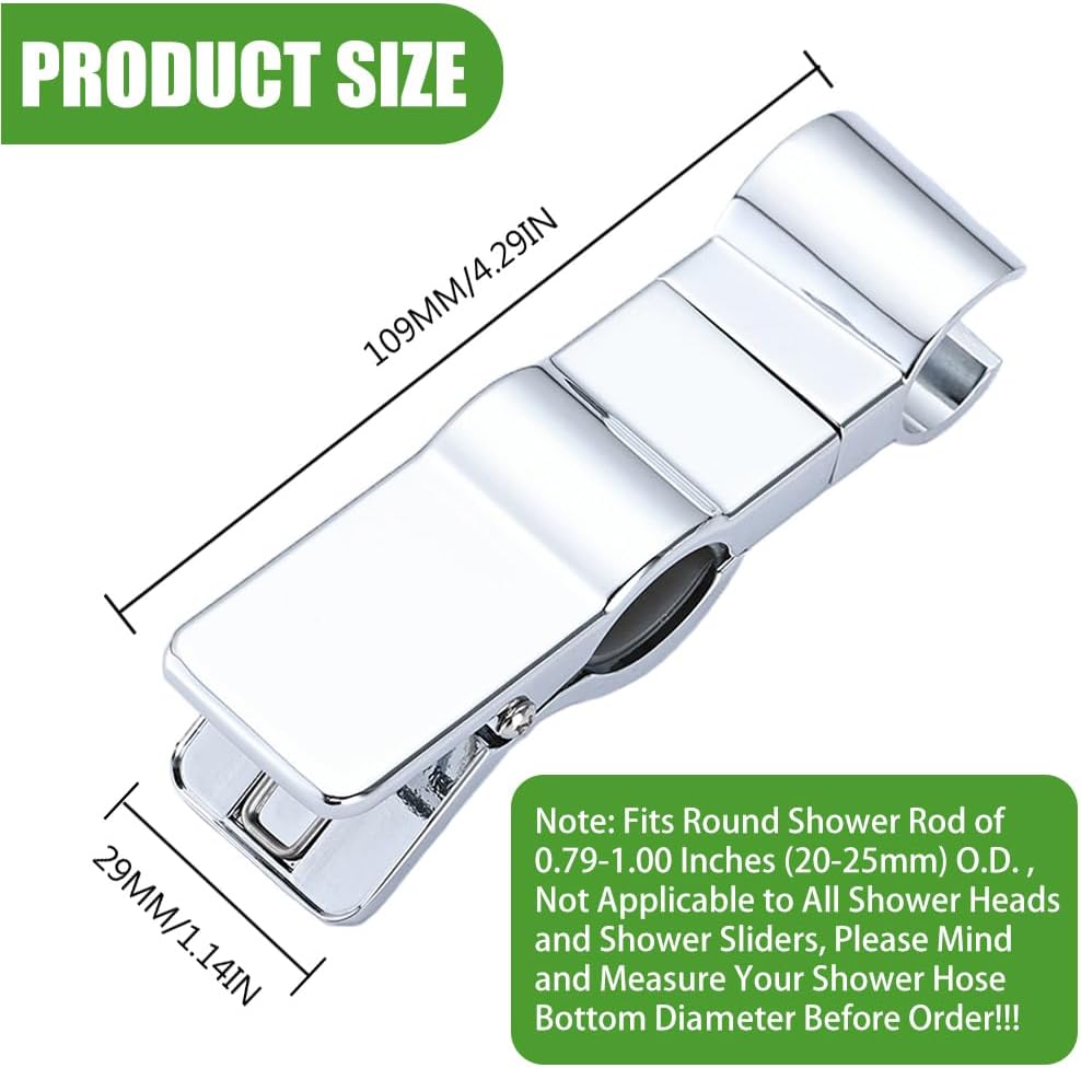 Adjustable Clip-On Shower Head Holder | Fits 0.79"–1.00" (20–25mm) Round Shower Slide Bar | No-Drill Clamp Bracket | Chrome ABS