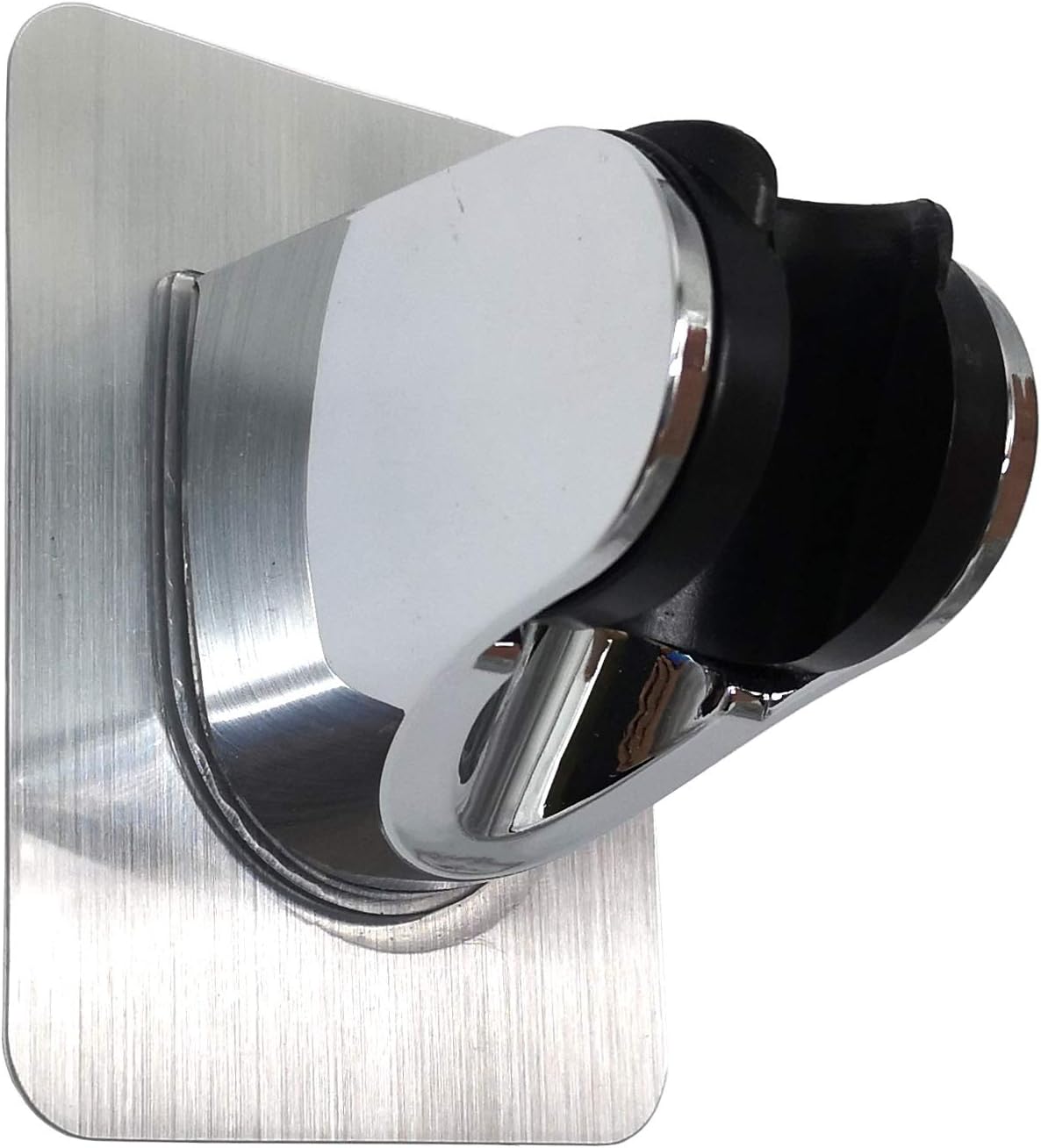 Drill-Free Fixed Shower Head Holder | Wall-Mounted Adhesive Shower Bracket | Fits 22mm Round Shower Handle | Chrome-Plated ABS | Strong Adhesive Backing