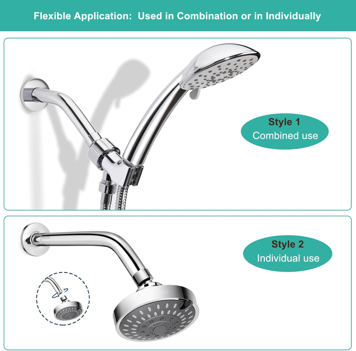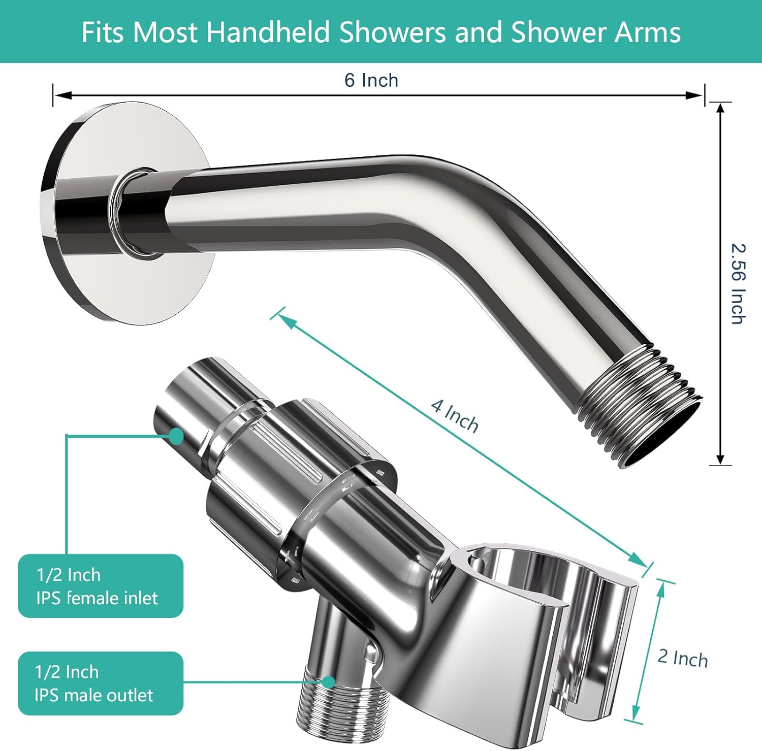 This Shower Arm and Holder Combo Set is the perfect upgrade for your bathroom, combining a 6-inch curved shower arm with a heavy-duty, adjustable shower head bracket. Both components are made of high-strength chrome-plated metal, delivering durability, corrosion resistance, and a polished, modern appearance.
