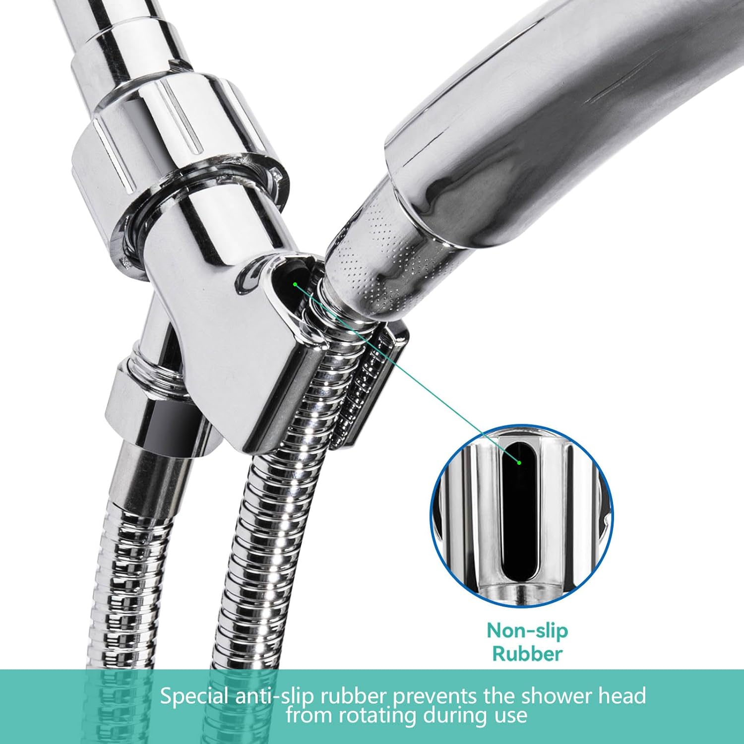Compatible with most handheld shower heads and hoses, this set features 1/2 inch IPS female inlet and male outlet threads, ensuring a universal fit. The included holder offers a 360° adjustable slot to aim your shower exactly where you need it—ideal for adults, children, or pet use.