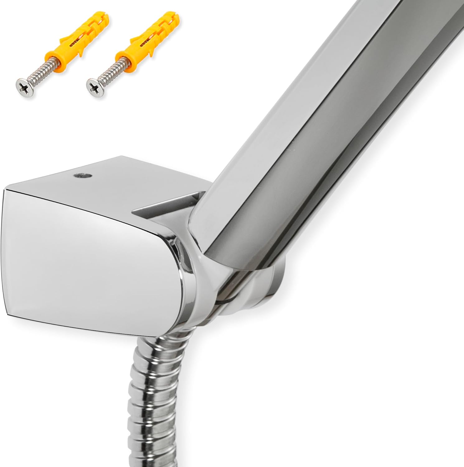 This wall-mounted handheld showerhead holder offers a sleek, polished chrome design that complements modern bathroom aesthetics. The product features dual installation options—drill-free adhesive mounting or traditional screw fixing, giving you the flexibility to install it in rental homes, tiled bathrooms, or newly renovated spaces.