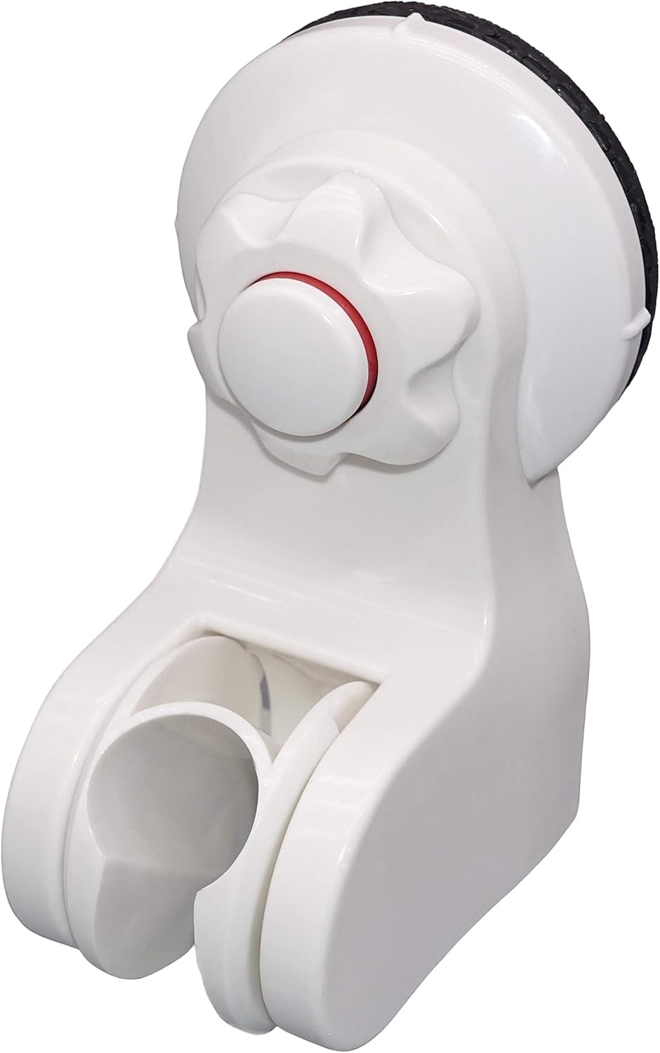 White Suction Cup Adjustable Shower Head Holder | Drill-Free Installation | Fits 24mm Handheld Shower | Locking Knob for Secure Mount